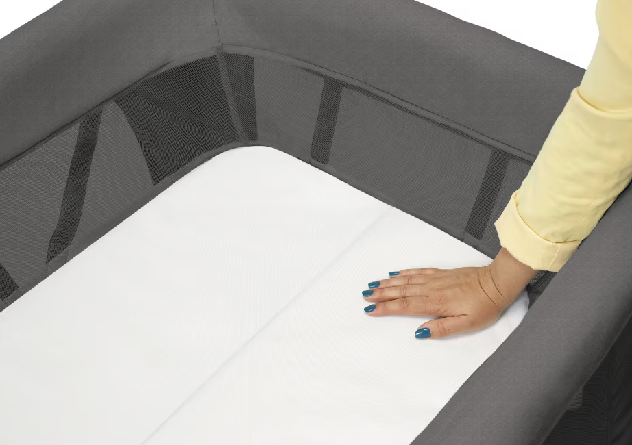 Дорожный манеж 3-в-1 оснащен уникальным двухуровневым матрасом, который расстегивается и идеально помещается в люльку, образуя меньший по размеру и более уютный матрас, идеально подходящий для новорожденных. По мере того, как ваш ребенок растет, матрас снова складывается, образуя более просторное и очень удобное пространство для игр или сна.